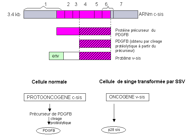 3.Comparaison entre l'ARNm c-sis et les protéines PDGFB et v-sis