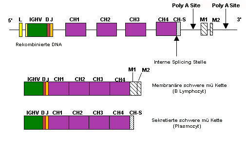 Abbildung 7 - Schema der Synthese der membranären und der sekretierten Mü-Kette.