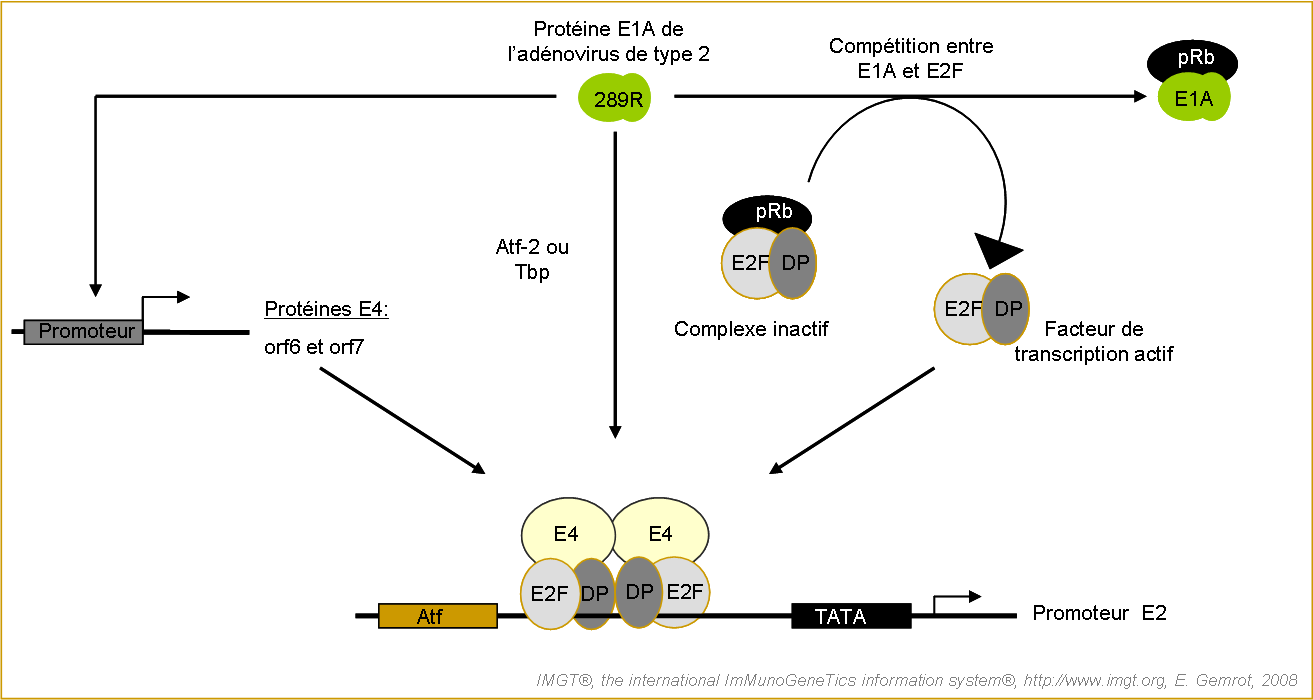 L'expression de ces gènes résulte de l'association du facteur de transcription E2F-DP et des protéines E4-orf6/7 (figure 5).