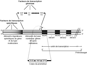 Figure 1 : Représentation schématique d'un promoteur classique régulant l'expression d'un gène de classe II