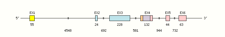 - Length of the exons and introns are in base pairs.